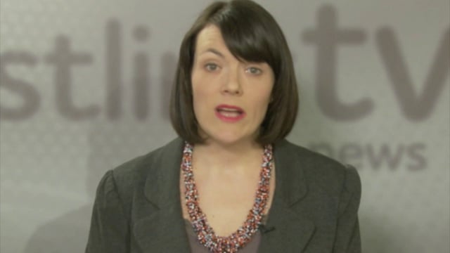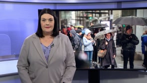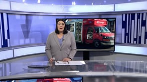 An on-site host interview about an upcoming costume sale in support of a local theatre.
